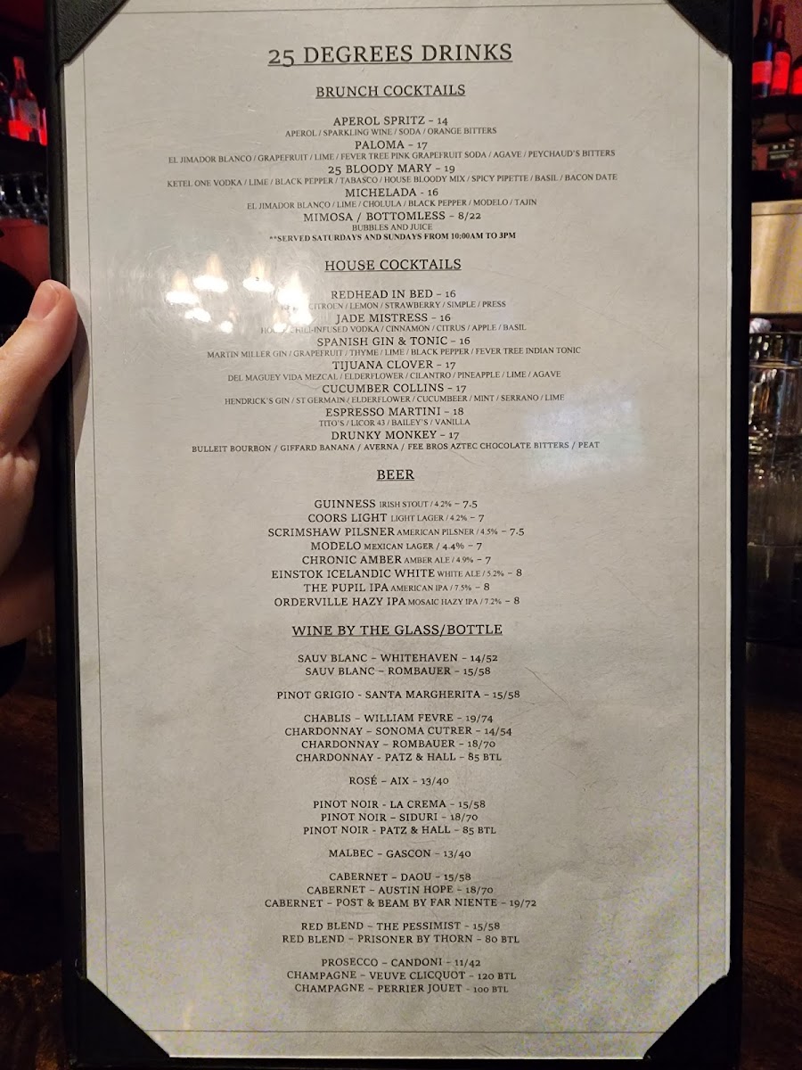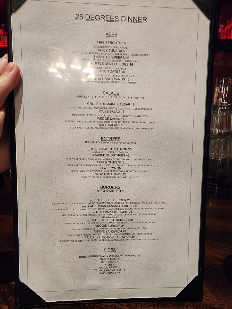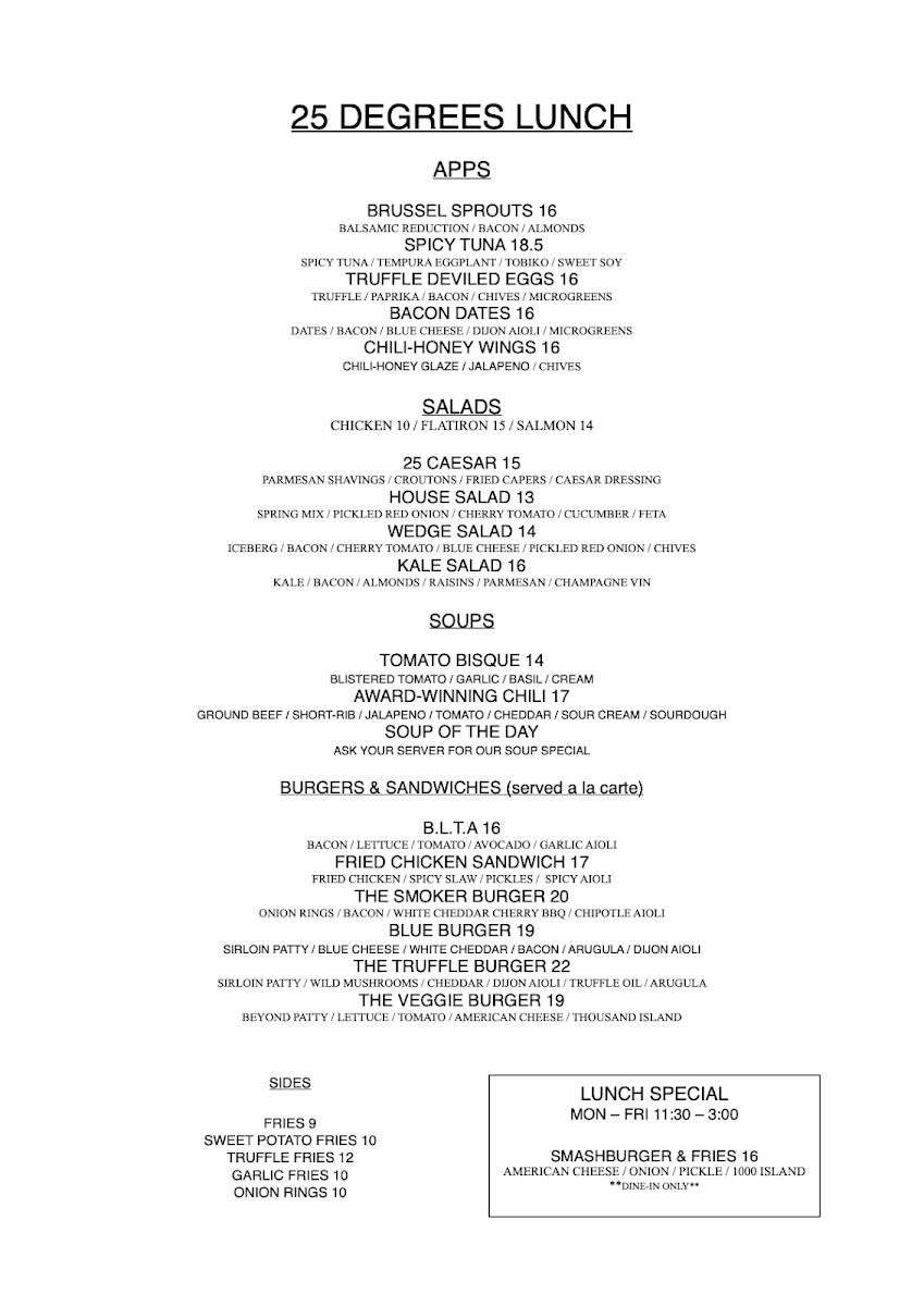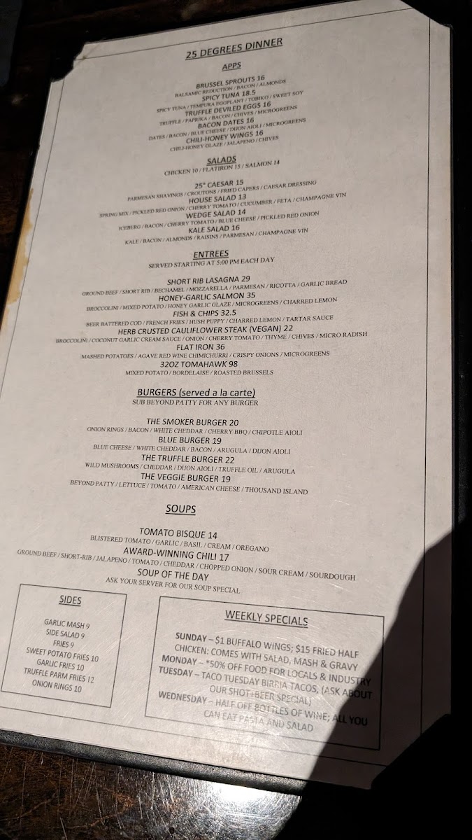 Chimichurri, onion strings, mashed potatoes (dinner), frites (lunch)